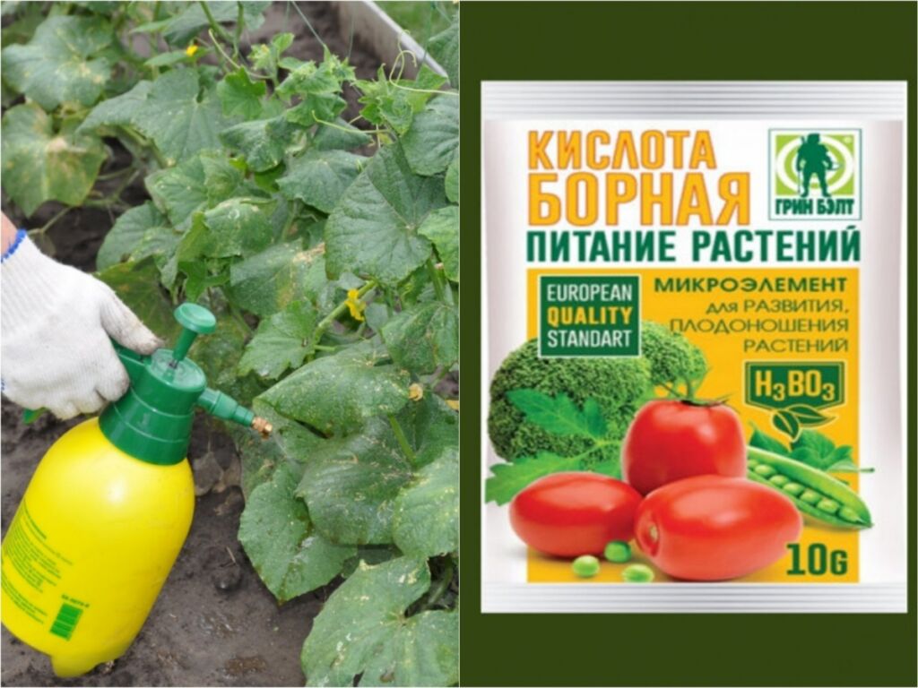 Если загнивают плоды у кабачков, в случае, если помидоры в теплице переживают стресс от жары, и, если не завязываются плоды у томатов, перцев и баклажанов, если мало завязей на огурцах, на томатах появляется фитофтора, приготавливается раствор борной кислоты и опрыскиваются растения: