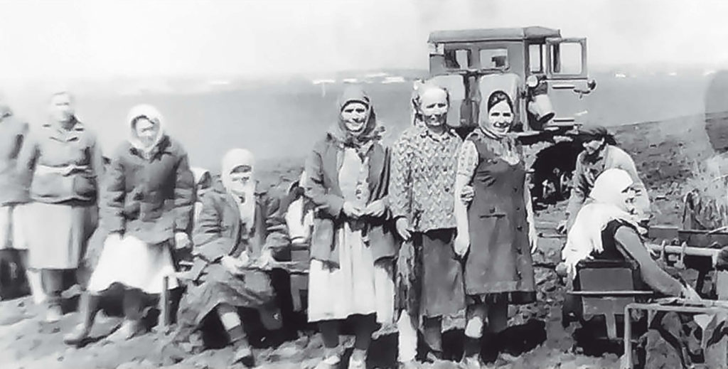 Колхозницы из Новогражданской на полевых работах.