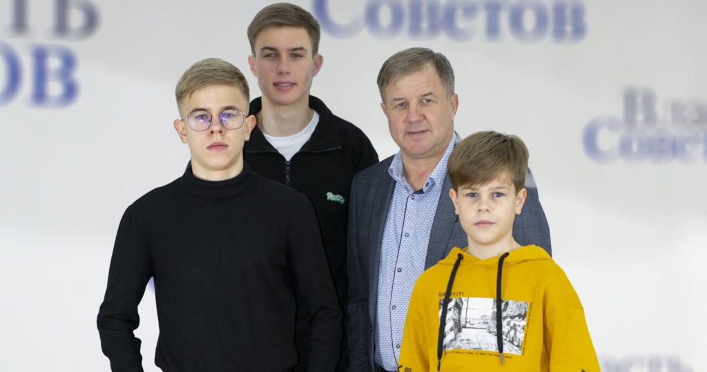 Владимир Васильевич Попов с сыновьями Филиппом, Глебом, Антоном.