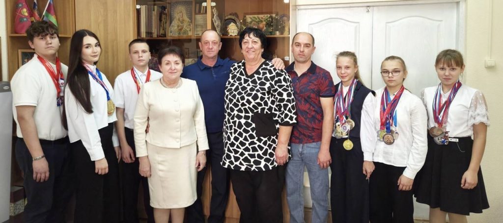 На встречу с главой района и его заместителем прибыли успешные девчонки — воспитанницы Романа Волошина: София Борисова — победитель первенства края и ЮФО, бронзовый призёр первенства России; Меланья Острожная — победитель первенства края, бронзовый призёр ЮФО; Мария Вайлунова — победитель краевого первенства. А также юные чемпионы тренера Александра Резникова: Артём Аврашко — серебряный призёр первенства мира; Светлана Семёнова — чемпионка международных соревнований; Герман Герман — победитель первенства России.