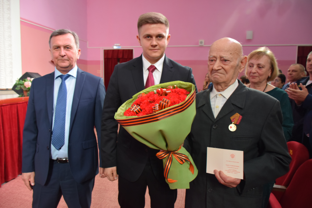 Труженик тыла Александр Михайлович Качура награжден медалью "80 лет Победы в Великой Отечественной войне 1941-1945 гг." Медаль ветерану вручили временно и.о. министра ТЭК и ЖКХ Краснодарского края Вячеслав Шапошник и глава Сергей Фирстков.