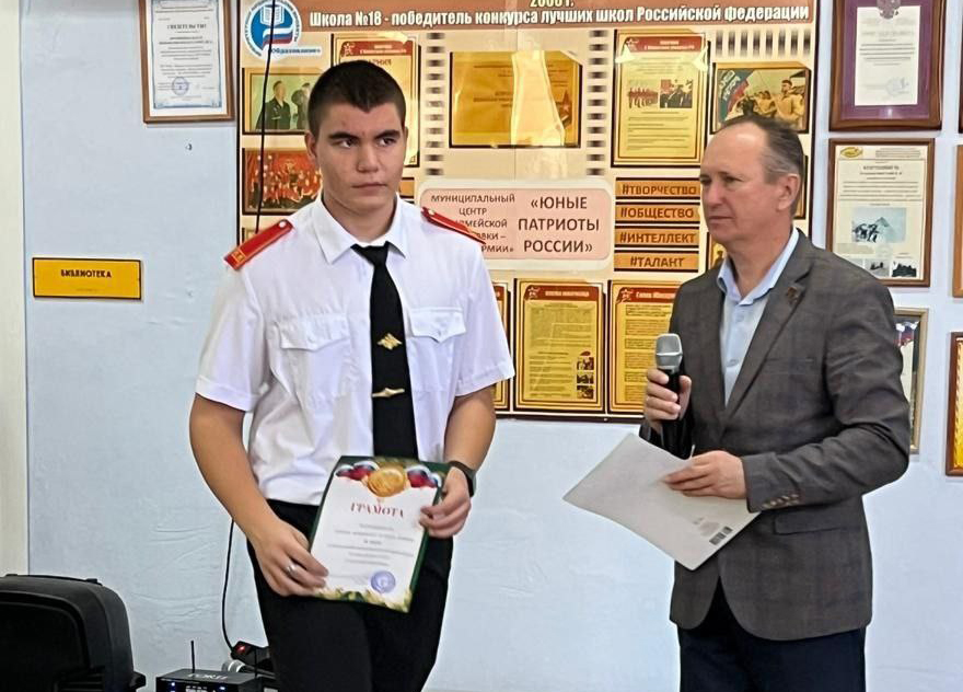 Директор Игорь Гребенюк подвёл итоги школьного этапа соревнований «К защите Родины готов!» и объявил о начале подготовки к муниципальному туру.