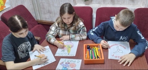 Юные жители станицы нарисовали спортивные сцены, картинки про правильное питание.