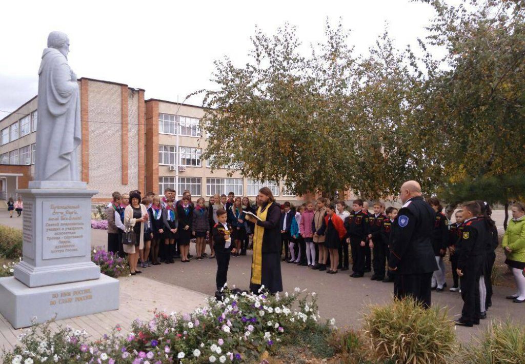 Сегодня, 9 октября, настоятель Свято-Никольского храма ст. Выселки иерей Александр Орищенко совершил молебен преподобному Сергию Радонежскому у памятника русскому святому, установленному в школе № 17 ст. Выселки. Об этом сообщает корреспондент «ВС».