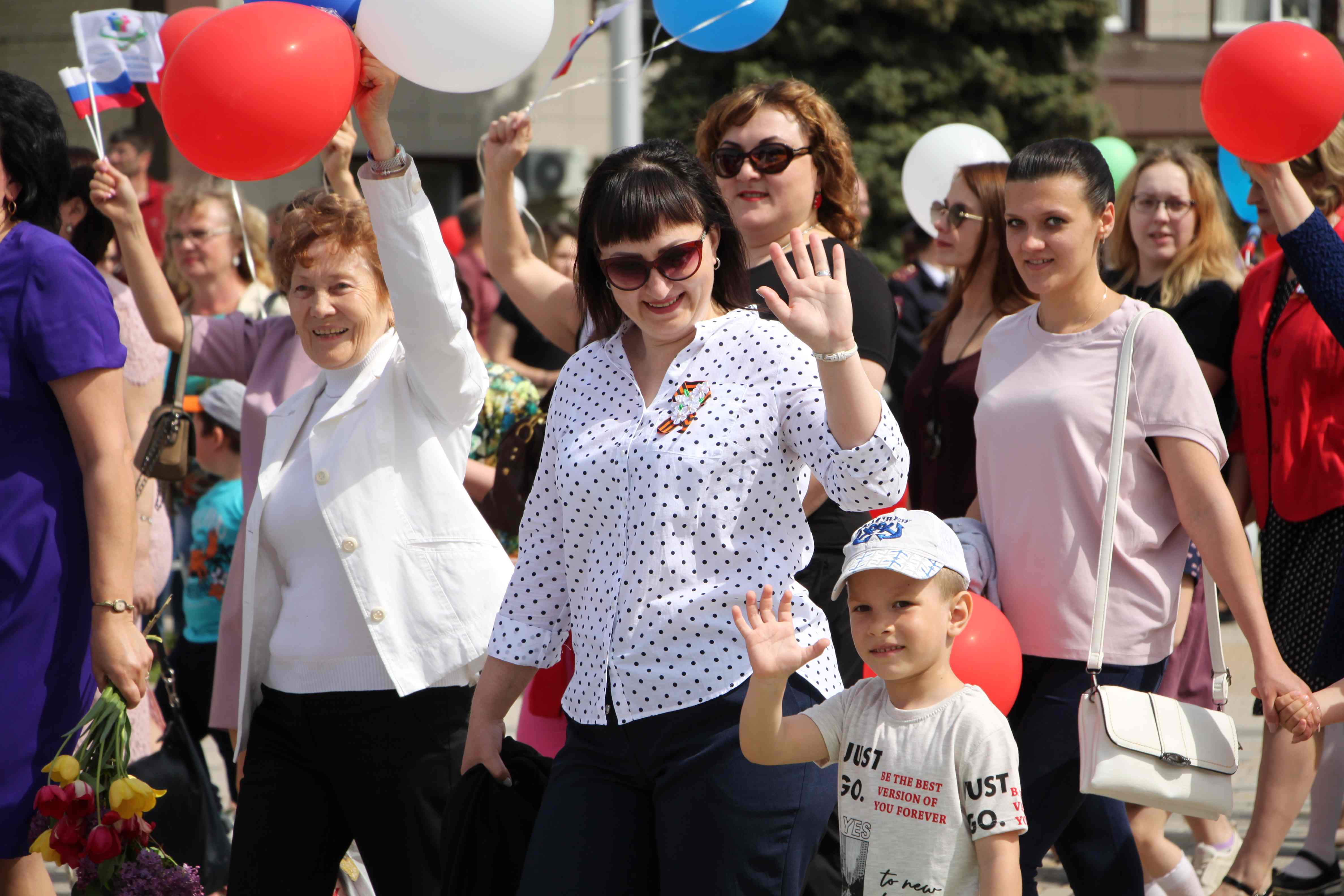 В этом году шествие открыли лучшие выселковцы: передовики производства, отмеченные профессиональными и общественными наградами работники различных учреждений и представители общественных организаций, победители творческих и спортивных соревнований среди детей и молодёжи в 2018-2019 годах.
