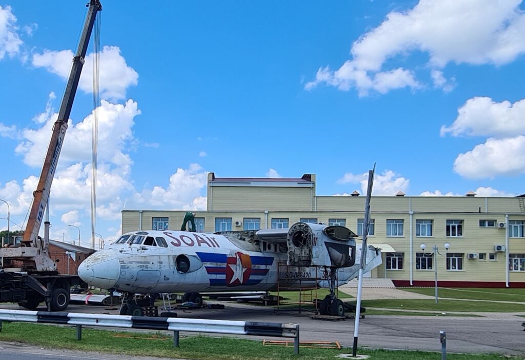 Самолёт с историей. В день установки самолёта в соцсетях появились споры из-за непонятной символики на его борту. Мы выяснили, что логотип и номер на воздушное судно были нанесены специально для съёмок фильма «Экипаж» (2015г.) режиссёра Николая Лебедева. По сюжету главный герой Владимира Машкова пилот Зинченко, оценивая масштаб разрушений взлётной полосы, принимает решение лететь на самолёте вымышленной авиакомпании SoAir с терпящего бедствие вулканического острова. После съёмок фильма о катастрофе с актёрами Данилой Козловским и Владимиром Машковым АН-26 находился в Жуковском в лётно-исследовательском институте им. М.М. Громова.