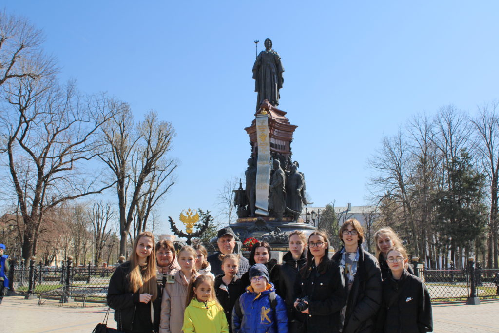 В самом начале главной улицы Красной возвышается монумент императрице Екатерине II, в честь которой и был назван город. Величественная, всемогущая, она будто наблюдает за происходящим вокруг, следит, как исполняется её наказ. Меня очень тронул рассказ об этой сильной, волевой женщине, об истории образования нашего края и вкладе казаков в его развитие.