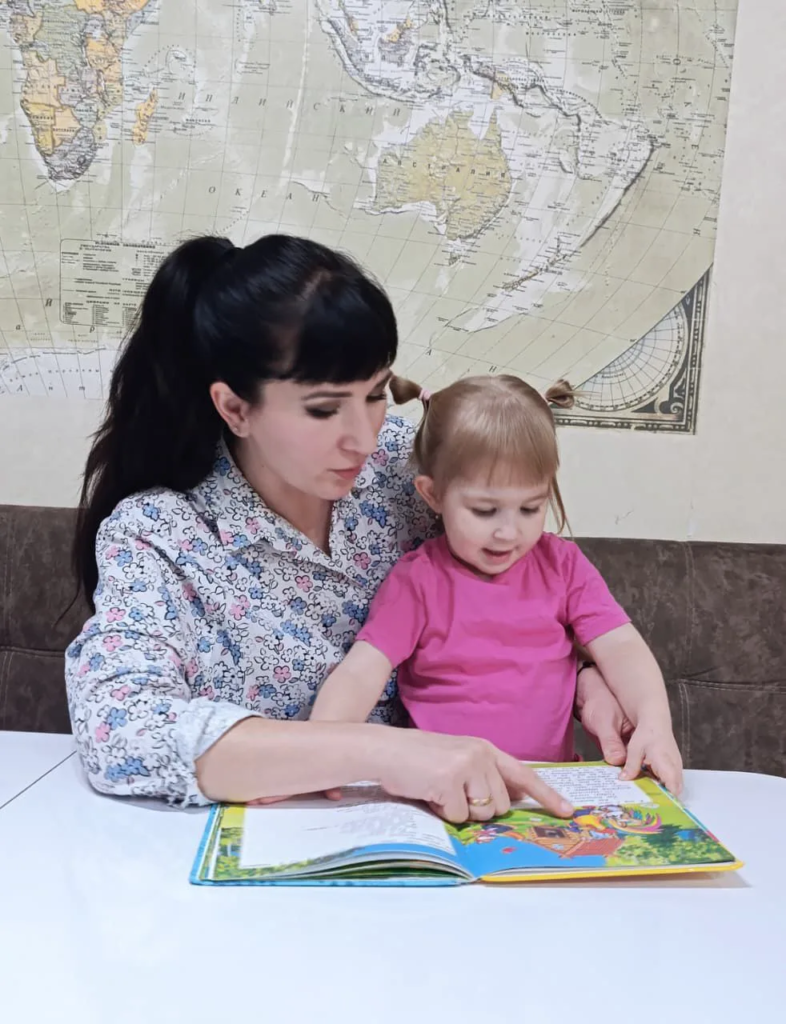 Наталья Евтеева, мама воспитанницы детского сада, — призёр муниципального этапа краевого конкурса «Читающая мама – читающая страна» в 2025 году в номинации «Семейные традиции. Добрые сказки». Наталья поделилась личным опытом выполнения вместе с дочерью творческих заданий по произведению Константина Паустовского «Кот–ворюга». Особое место заняла сама книга. Издание — реликвия семьи, которую прочитали дети всего рода по материнской линии.