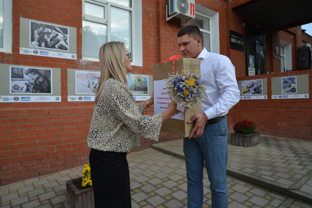 На торжестве мы представили главных героев встречи — авторов художественных работ. Юные художники получили награды ранее — на открытии арт-выставки в День Победы, 9 мая. Также талантливая группа детей была отмечена поездкой в краевой музей Фелицына. На открытии выставки ребятам вручили памятные постеры картин и большой набор для творчества.