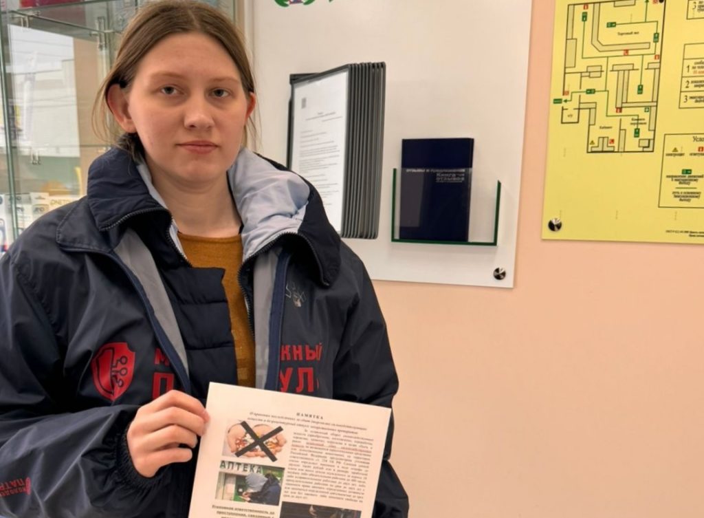Члены объединения распространили в аптеках профилактические листовки о запрете приобретения в пунктах продаж сильнодействующих веществ без назначения врача.
