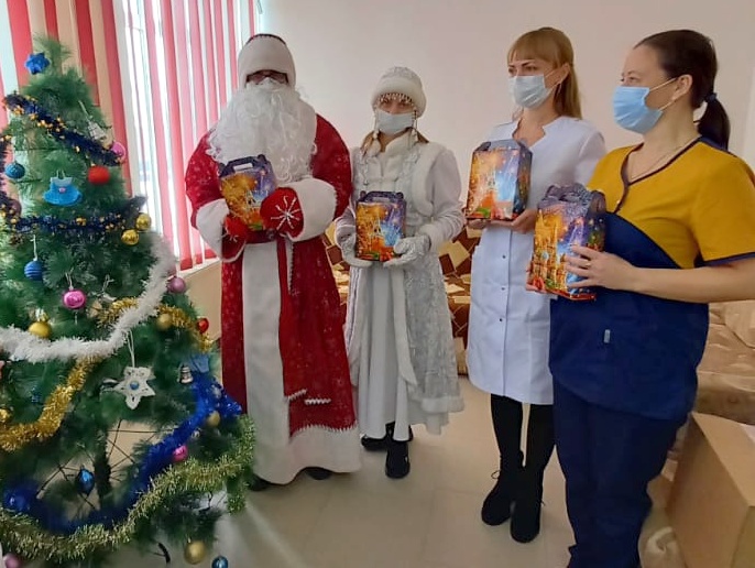 Со словами благодарности и признательности за сложный, колоссальный и как никогда важный труд врачам и медсёстрам были переданы 100 новогодних подарков.