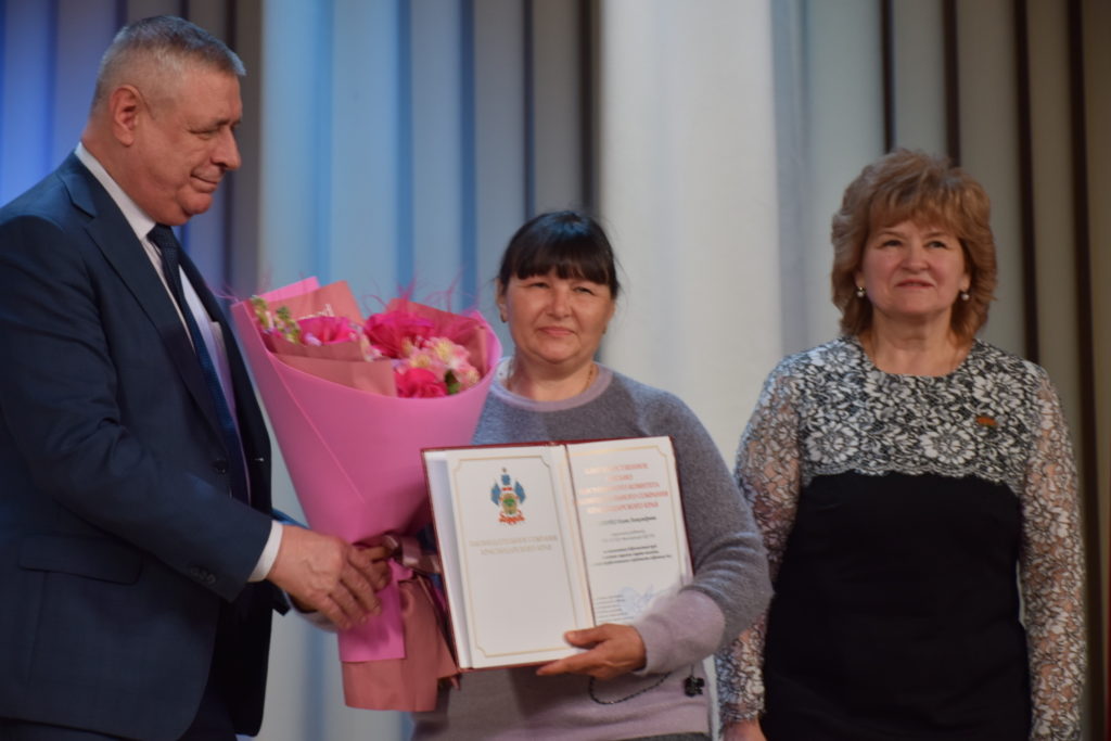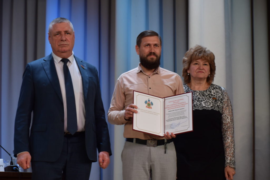 За многолетний добросовестный труд в системе социальной защиты населения благодарственным письмом профильного комитета ЗСК были отмечены соцработники Выселковского комплексного центра социального обслуживания населения Елена Баленко и Ираида Дворяшина. Благодарственного письма профильного комитета ЗСК за высокий профессионализм и успехи в деле охраны здоровья населения удостоен врач-терапевт Березанской участковой больницы Николай Анфалов.