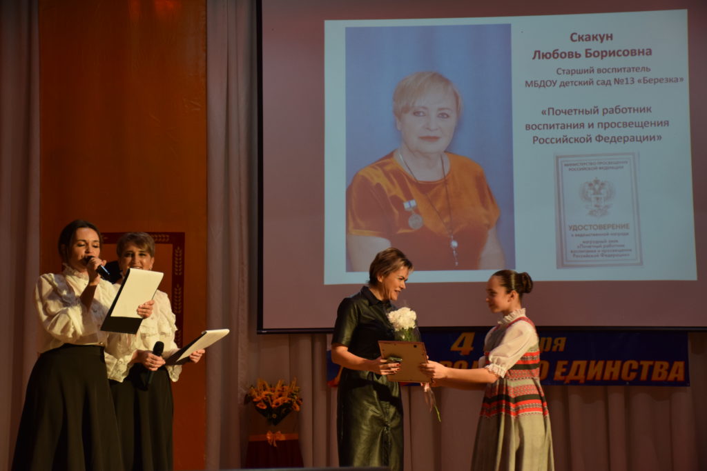 Юлия Сергеевна Науменко, руководитель детского сада № 13 «Березка». Каждый день детский сад с радостью принимает 57 ребятишек, их комфорт обеспечивают 17 сотрудников. Старший воспитатель Любовь Борисовна Скакун имеет нагрудный знак «Почетный работник воспитания и просвещения Российской Федерации».