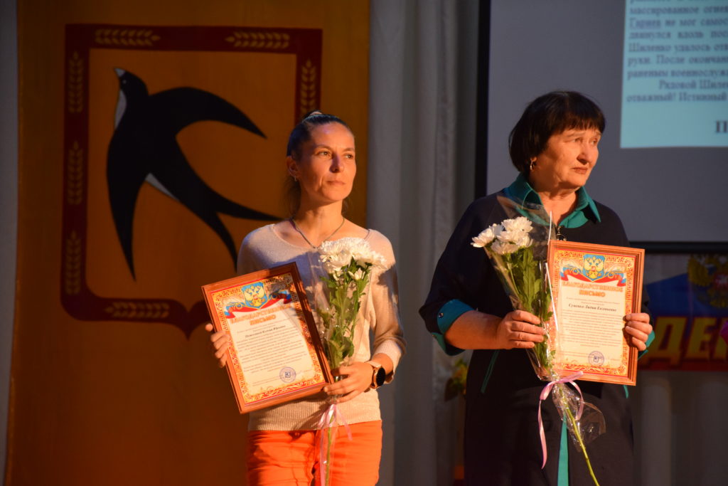 Равнение на ветеранов. Слова благодарности за патриотическое воспитание детей и молодёжи звучали на празднике в адрес Петра Ивановича Бугайчука, председателя районного филиала краснодарской краевой общественной организации «Герои Отечества», Николая Яковлевича Ковалева, председателя ветеранской организации сельского поселения.